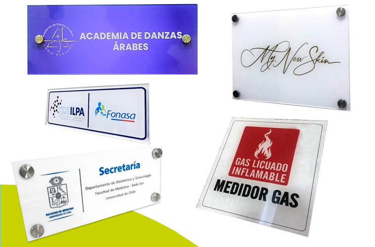 Fabricados en acrílico transparente e impreso a full color con efecto espejo, esto quiere decir que es pegado por dentro para destacar el elegante acabado que nos otorga el acrílico. Pueden ir con distanciadores o adhesivo de doble contacto.